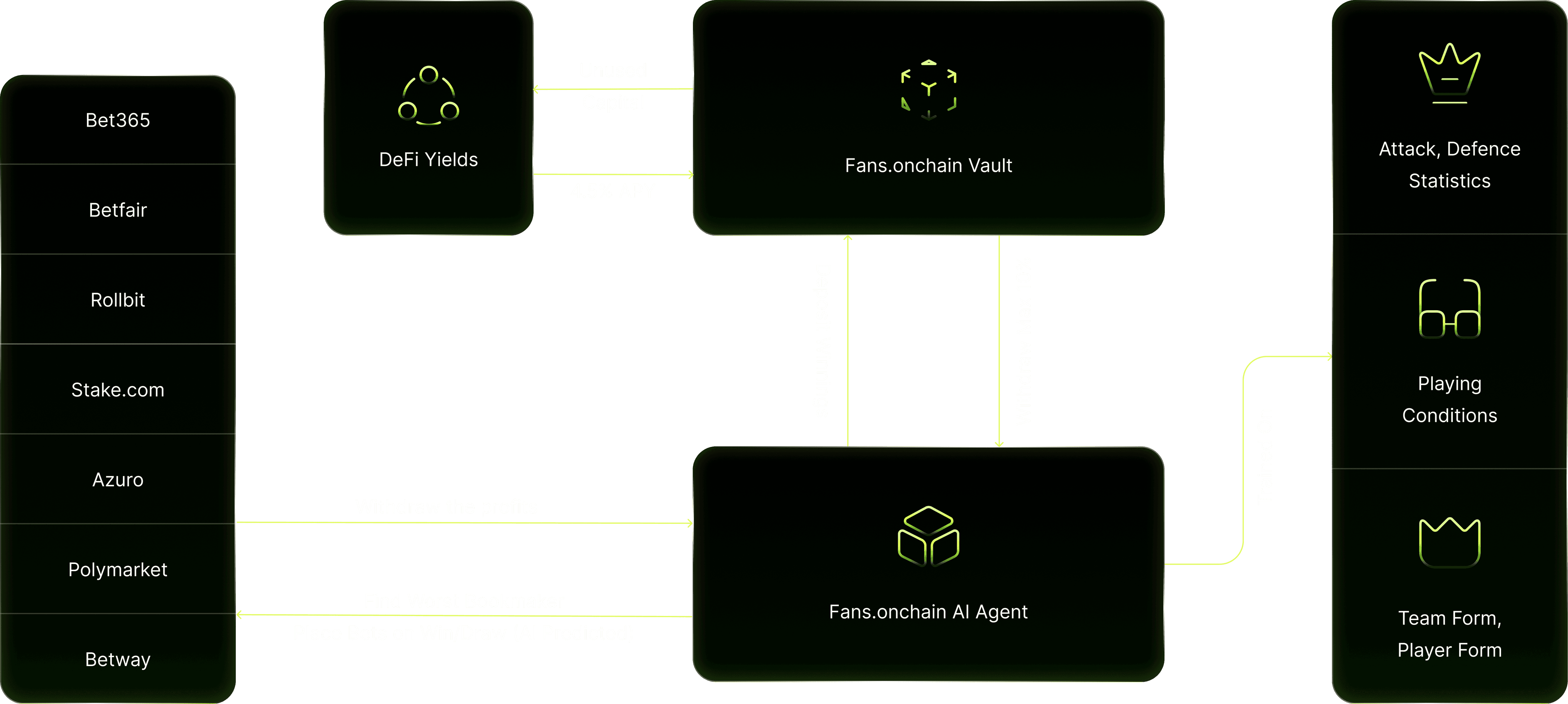 For fans who truly believe. Fans.Onchain is where loyal fans put their money where their heart is - into AI-powered vaults that bet only on your club, never against it. When your club thrives, so does your wallet.